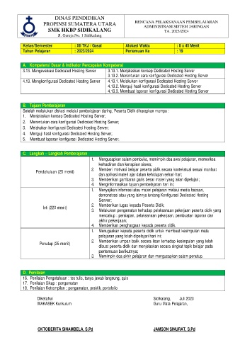 PROPINSI SUMATERA UTARA RENCANA PELAKSANAAN PEMBELAJARAN