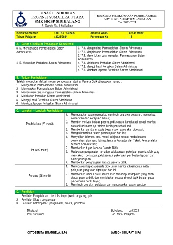 Tahun Pelajaran : 2023/2024 Pertemuan Ke : 14