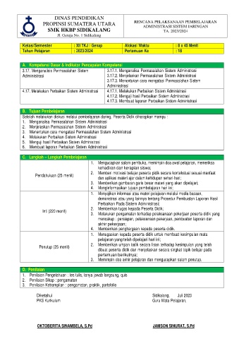 Tahun Pelajaran : 2023/2024 Pertemuan Ke : 18