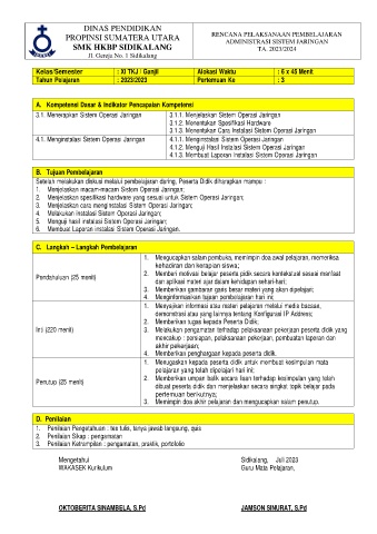 Tahun Pelajaran : 2023/2023 Pertemuan Ke : 3