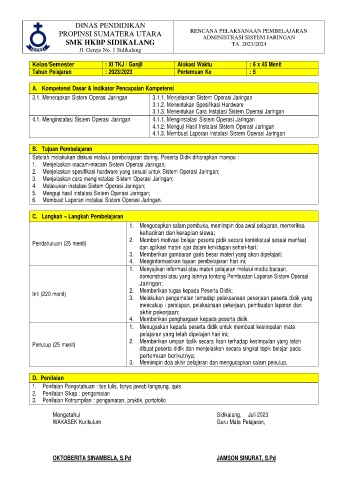 Kelas/Semester : XI TKJ / Ganjil Alokasi Waktu : 6 x 45 Menit