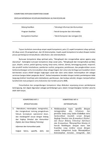 KOMPETENSI INTI DAN KOMPETENSI DASAR