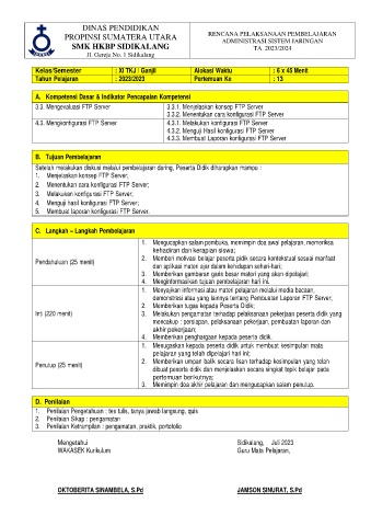Kelas/Semester : XI TKJ / Ganjil Alokasi Waktu : 6 x 45 Menit