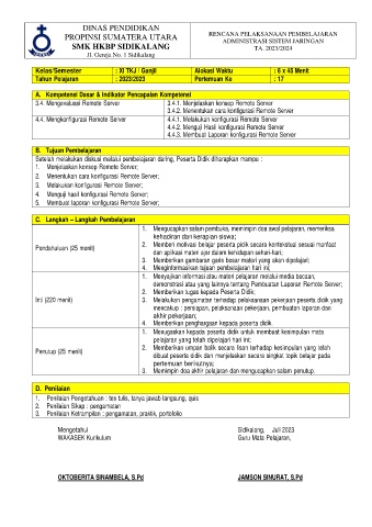 Tahun Pelajaran : 2023/2023 Pertemuan Ke : 17