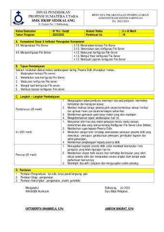 Tahun Pelajaran : 2023/2023 Pertemuan Ke : 19
