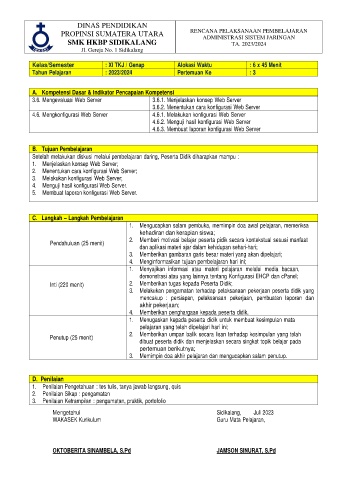 Tahun Pelajaran : 2023/2024 Pertemuan Ke : 3