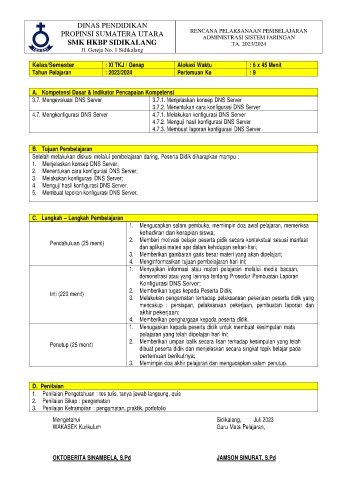 PROPINSI SUMATERA UTARA RENCANA PELAKSANAAN PEMBELAJARAN