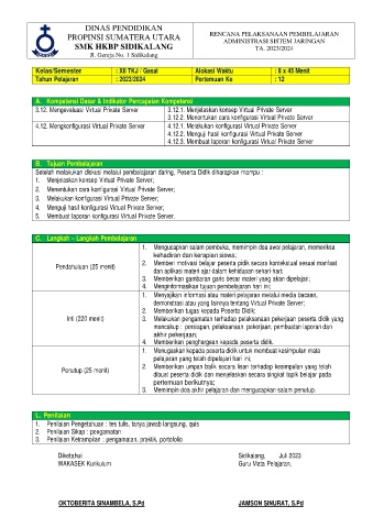 Kelas/Semester : XII TKJ / Gasal Alokasi Waktu : 8 x 45 Menit