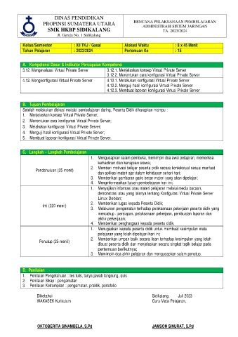 Kelas/Semester : XII TKJ / Gasal Alokasi Waktu : 8 x 45 Menit